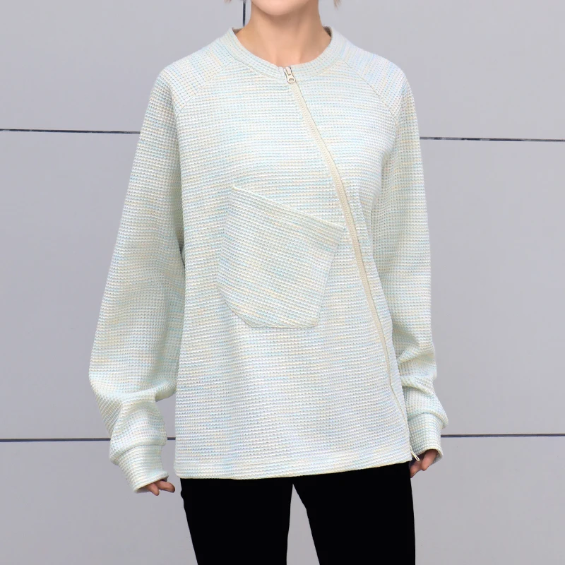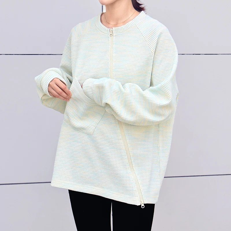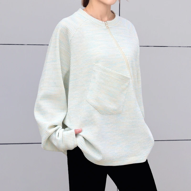 Women's Cozy Waffle Fabric Zip-Up Pocket Sweatshirt Long Casual Pullover for Fall and Winter Anti-Wrinkle Style